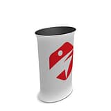 The Brandcusi® Counter features a lightweight frame and tension fabric system, making assembly quick and straightforward. Exhibitors can set it up without tools, ensuring convenience at every event. Its curved design provides a modern, professional look while offering practical storage and display space for marketing materials or product samples.
