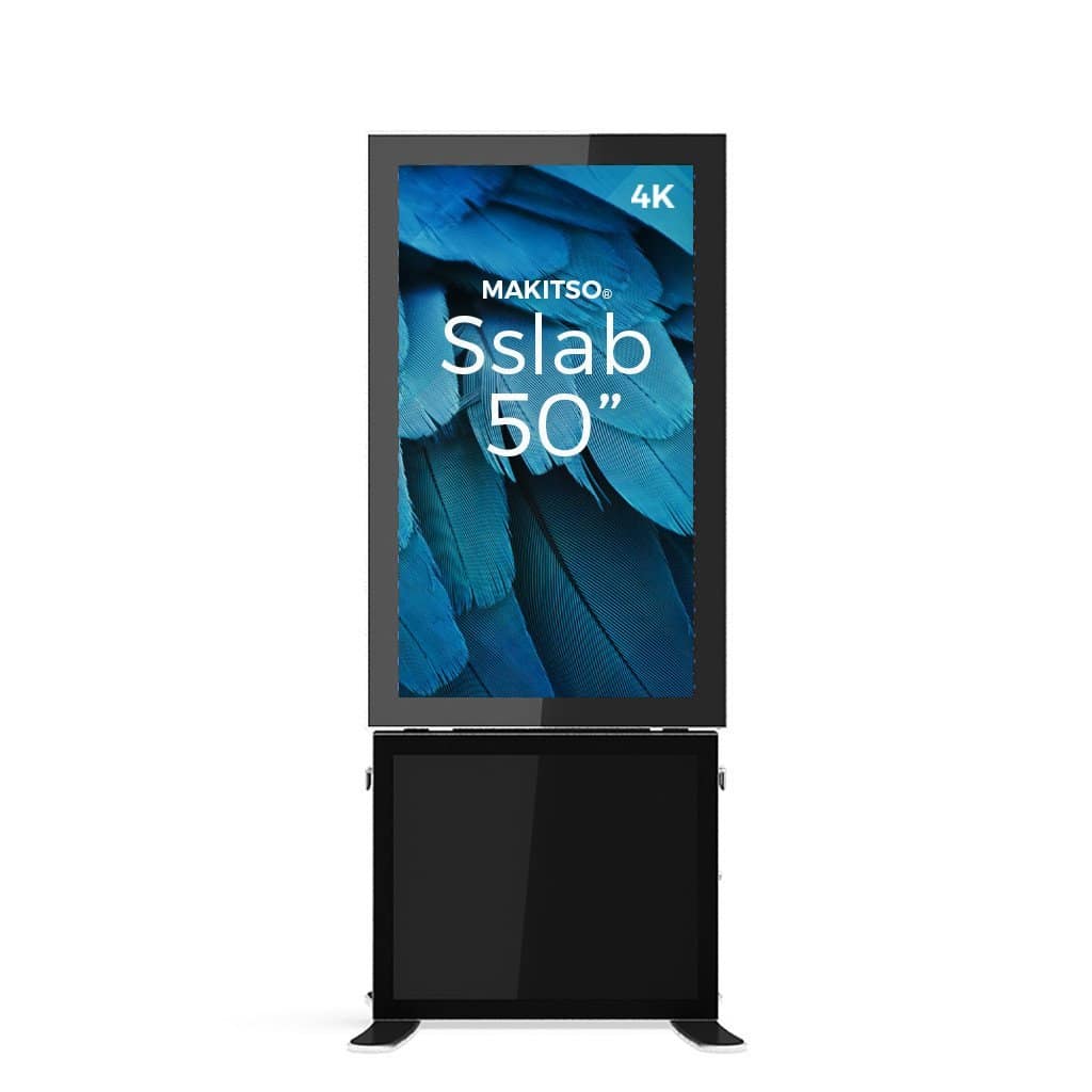 Discover the Makitso® Sslab digital signage kiosk with optional touch screen display solutions and create a lasting impression in the mind of your audience through personal interactive experiences. Change angle and height. Convert from table top to 1800mm centre point height.