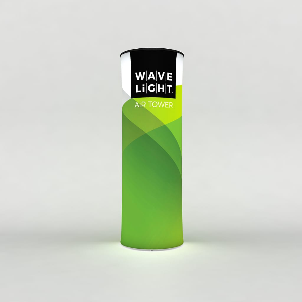 The all-new WaveLight® Air Backlit Inflatable Circular Tower. Experience a 360° backlit marketing surface that lights up a room. Go from flat packed to fully inflated in under 60 seconds. The WaveLight® Air Inflatable Backlit Circular Tower has an inner core that’s durable, stable and strong enough to sit on without collapsing. A self-locking quick-release air valve makes it easy to inflate without losing air and just as easy to deflate with the push of a button.