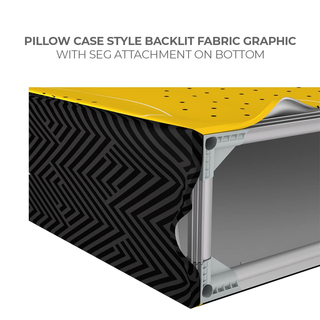 - (1) 4-sided Backlit Pillowcase Graphic Print with black felt top – a vibrant, recyclable and wrinkle-resistant polyester stretch fabric with sewn-in silicone edge insert.