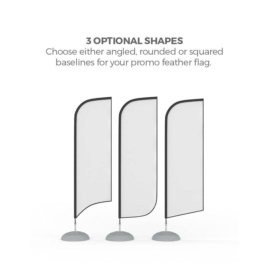 Promo Bowhead Flags are great for special events. WaveLine® Bowhead Flag makes it easy to display large graphics and increase your visibility at Indoor events, retail locations or advertising promotions. Available in 4 different sizes with 3 different optional shapes.