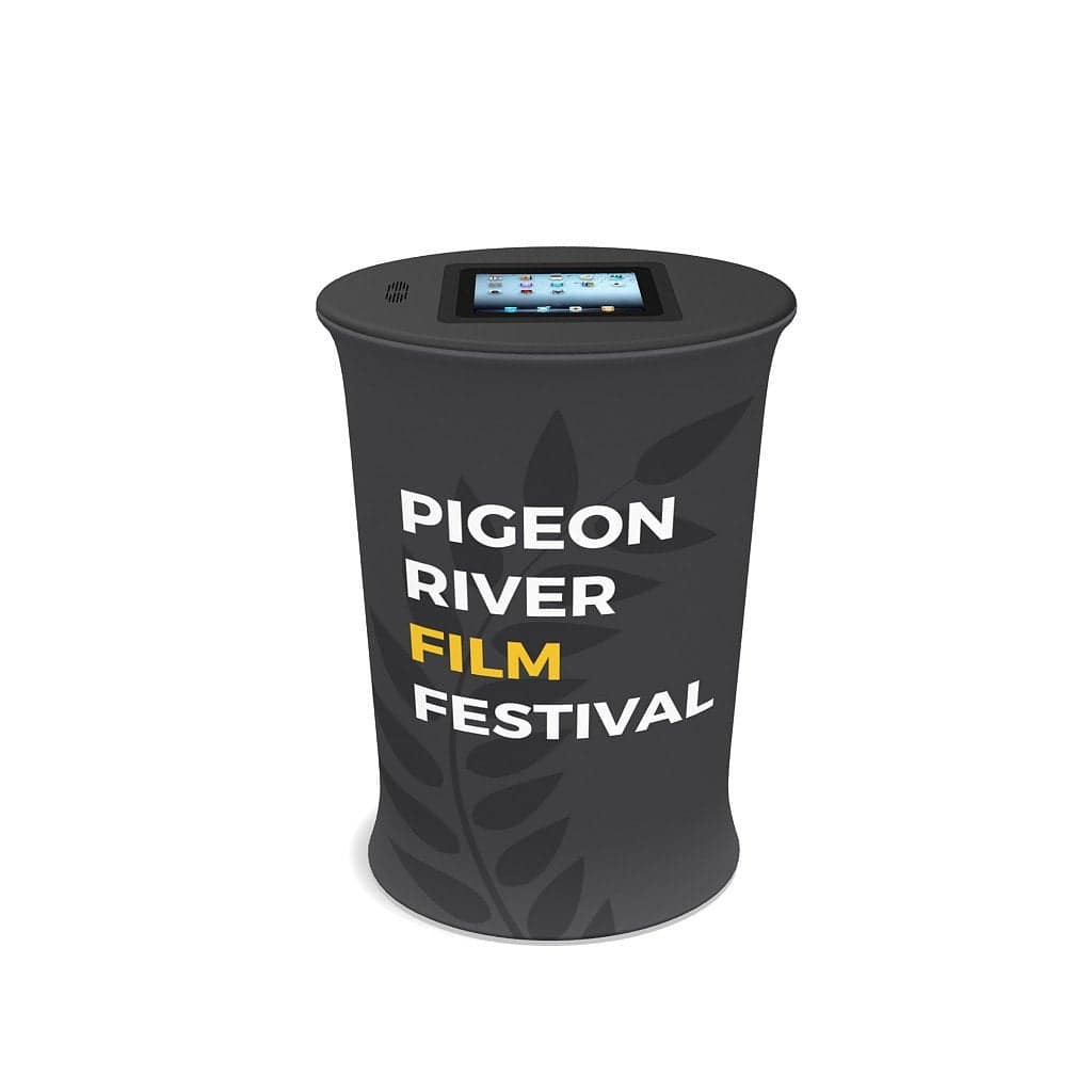 The WaveLine® Circular Counter is a great addition to any trade show or event booth and offers a space for displaying products and literature, presenting or speaking behind, or filling out paperwork. This counter is easy to assemble and made from durable aluminum tubing, MDF plywood and Dye Sublimation Graphic Print.