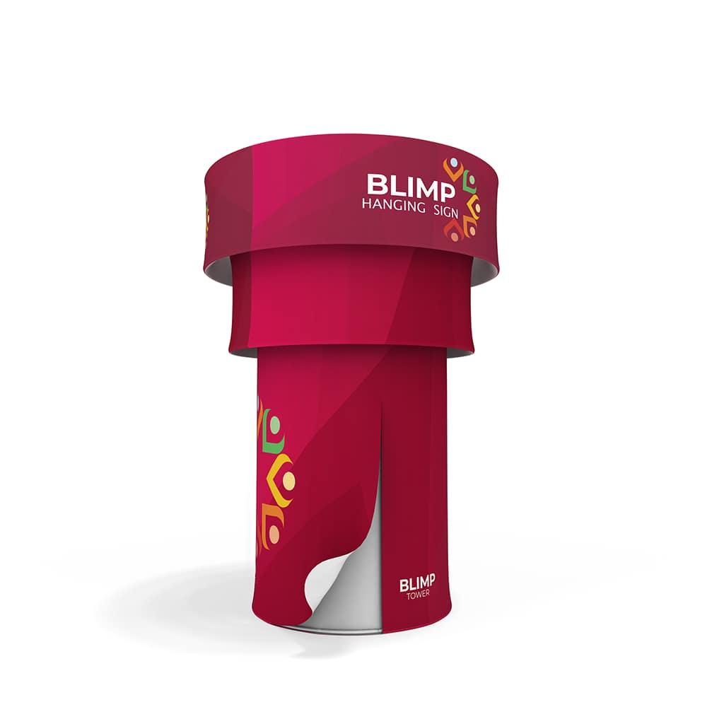 Get your brand seen with the WaveLine® Circular XL Blimp Tower. Built-on lightweight extruded aluminum frames wrapped in vibrant dye-sublimation graphic prints, this display tower is designed to attract attention from across the exhibition hall. Pair with many of our other fabric displays and digital kiosks to create a customised 20×20 island exhibit or branded event. The WaveLine® Circular XL Blimp Tower is not only a dynamic centrepiece display but also doubles as a storage room.